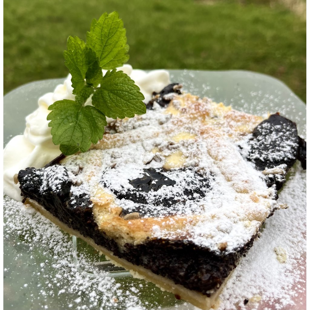 Linecký mřížkový koláč s makem, tvarohem a povidly