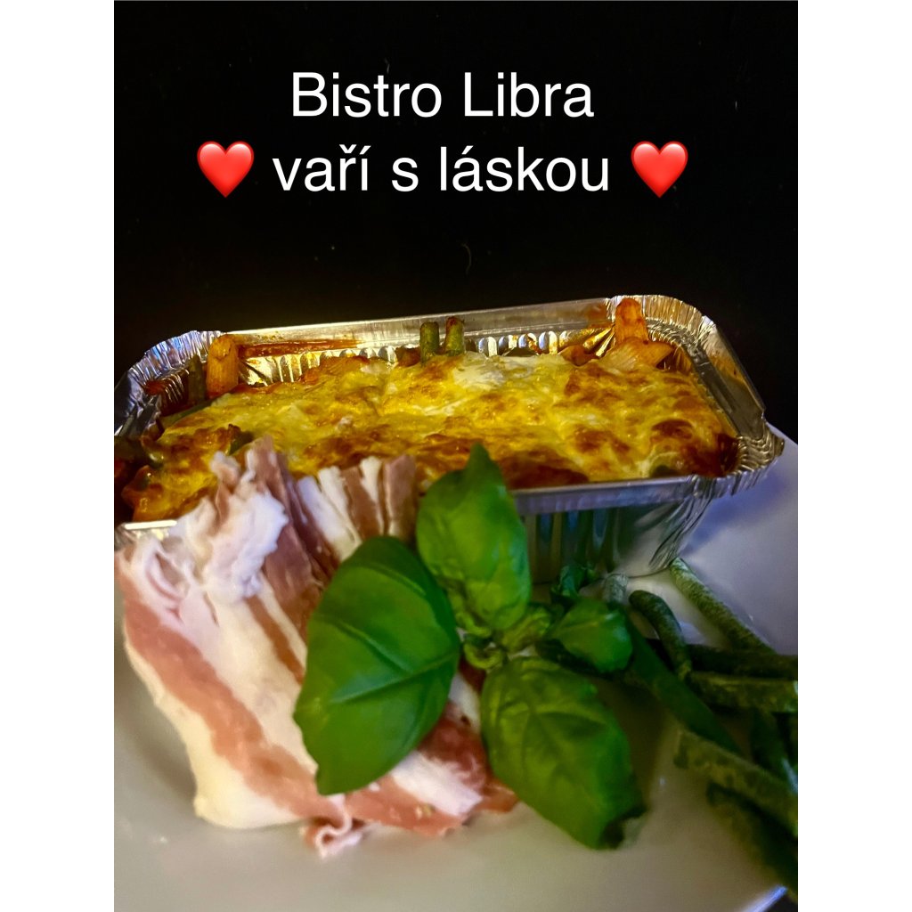 Tomatový základ, fazolové lusky, pancetta, feferonky, gouda, mozzarella, cesnek