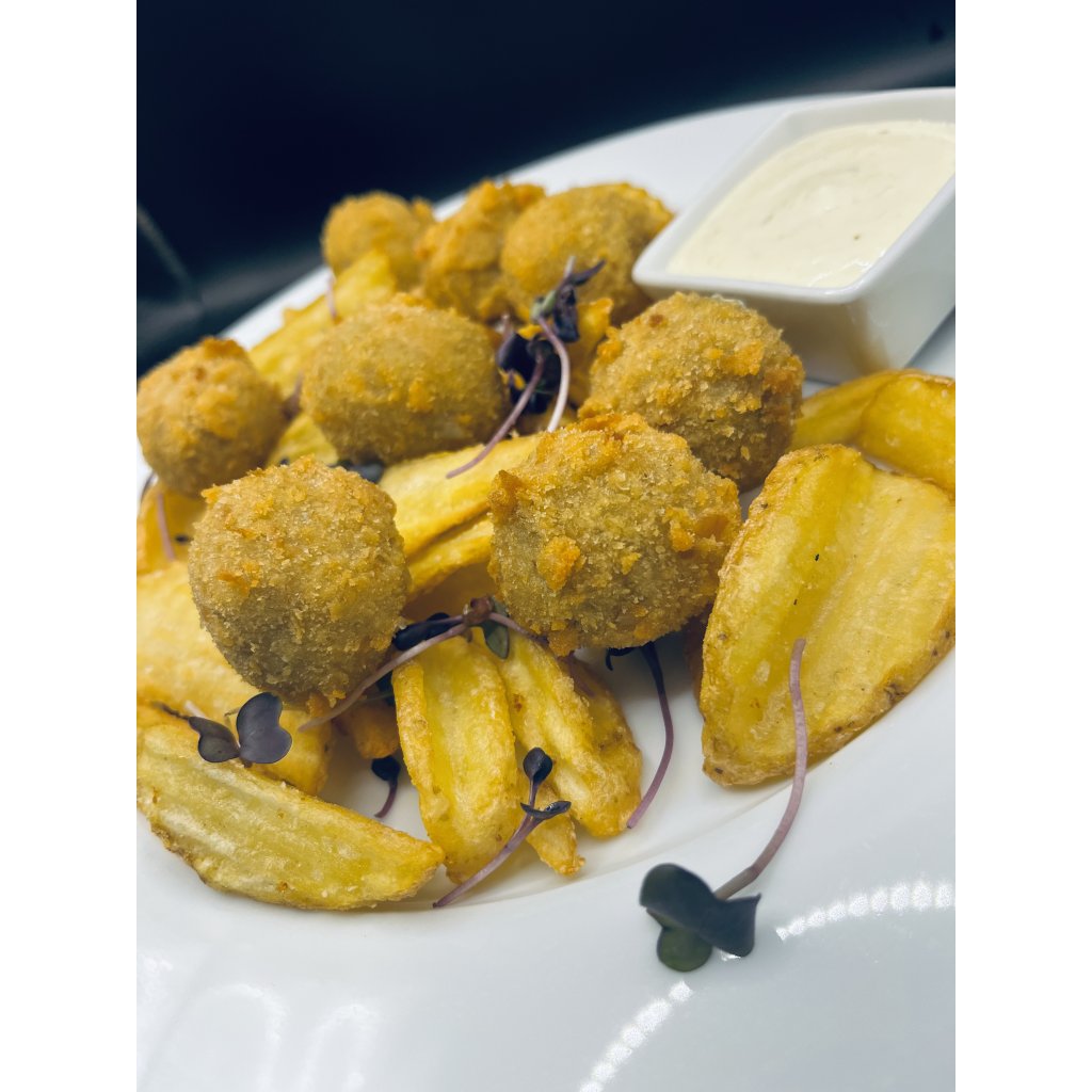 . Smažený sýr niva,americké brambory, tatarka